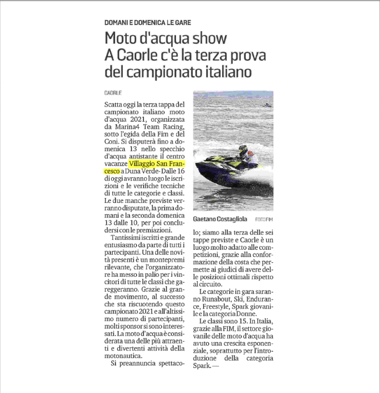 Campionato Italiano Moto d’Acqua : Caorle – Duna Verde 11-13 giugno