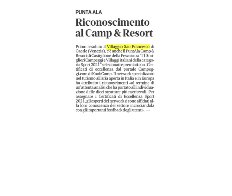 Riconoscimento al Camp & Resort